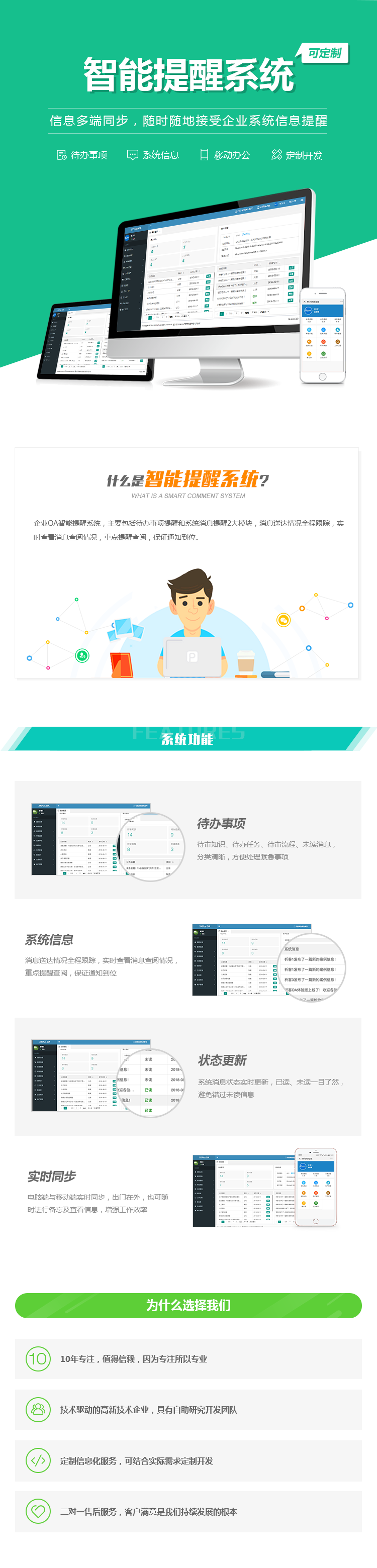 企业OA智能提醒系统,主要包括待办事项提醒和系统消息提醒2大模块,消息送达情况全程跟踪,实时查看消息查阅情况,重点提醒查阅,保证通知到位。